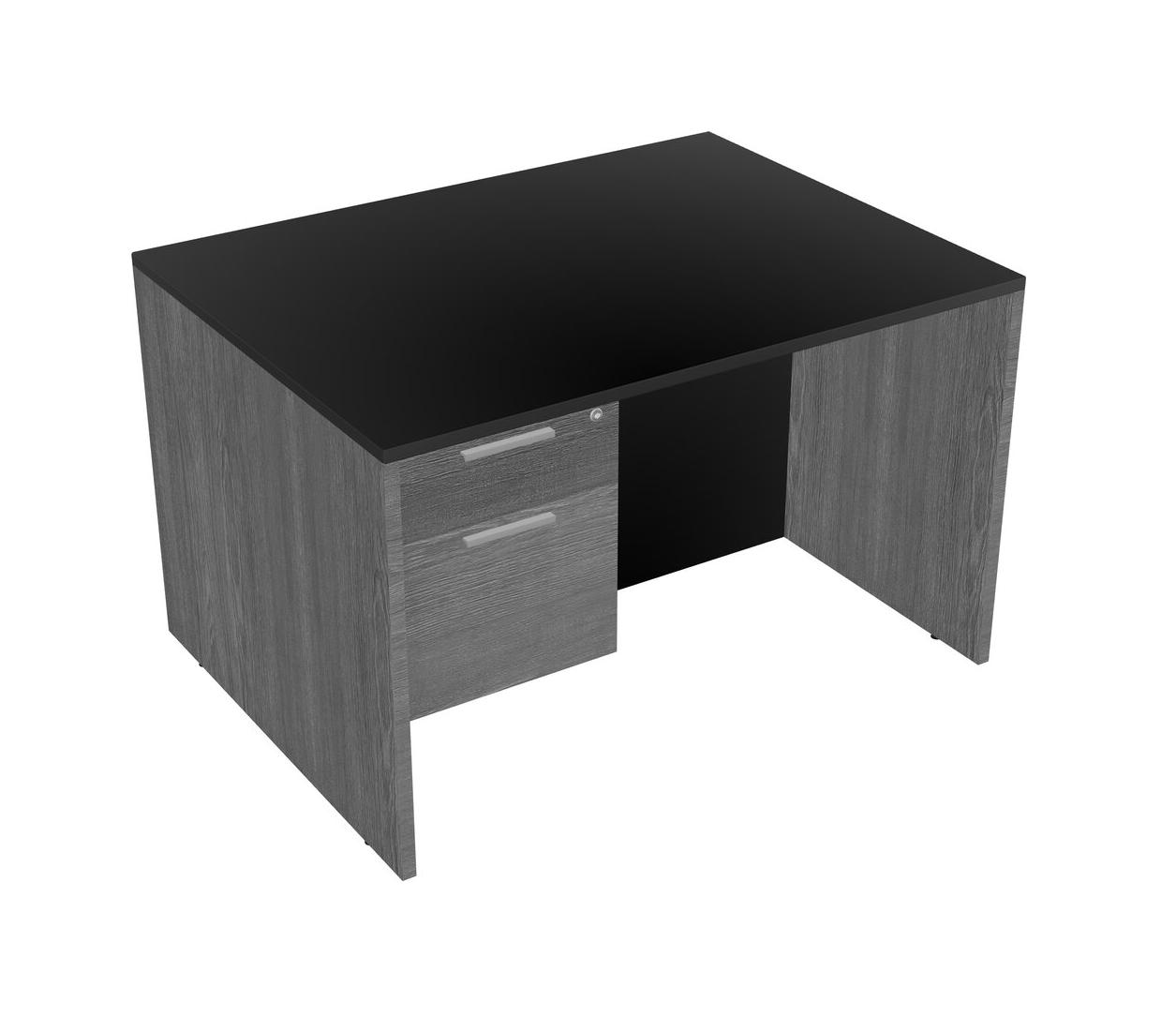 Black Rectangular Office Desk Plus Grey Hanging Drawers