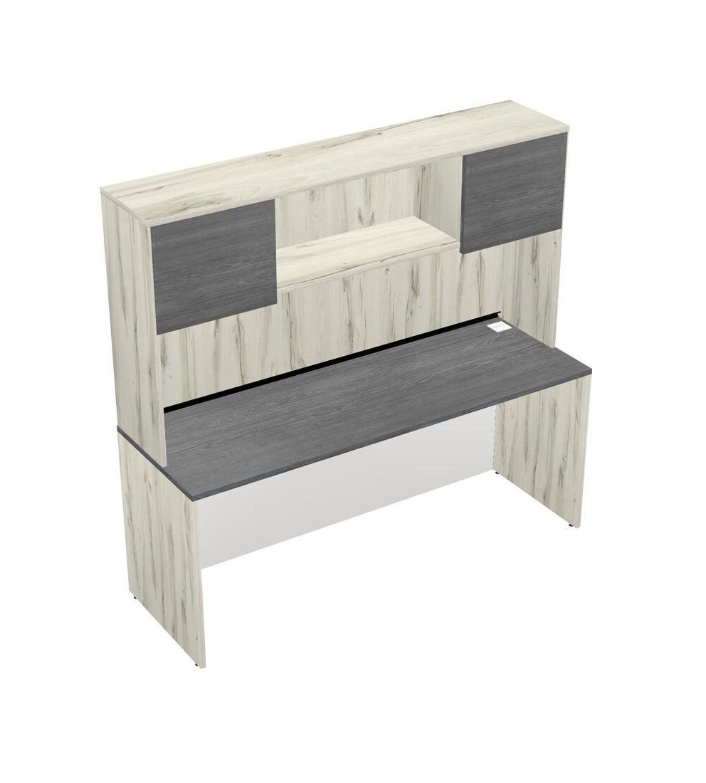Grey Rectangular Office Desk And Heinne Holz Hutch