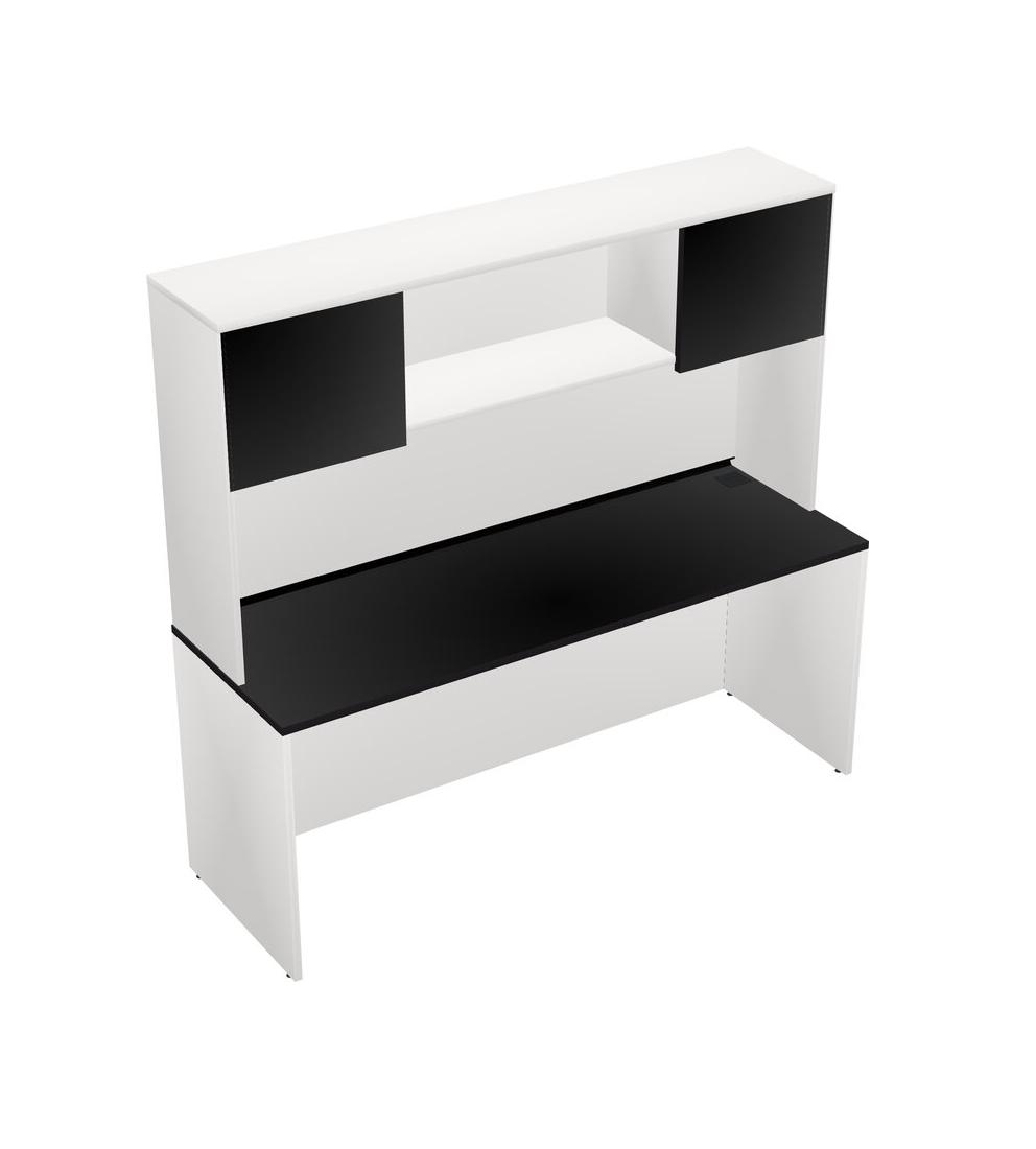 Black Rectangular Office Desk And White Hutch