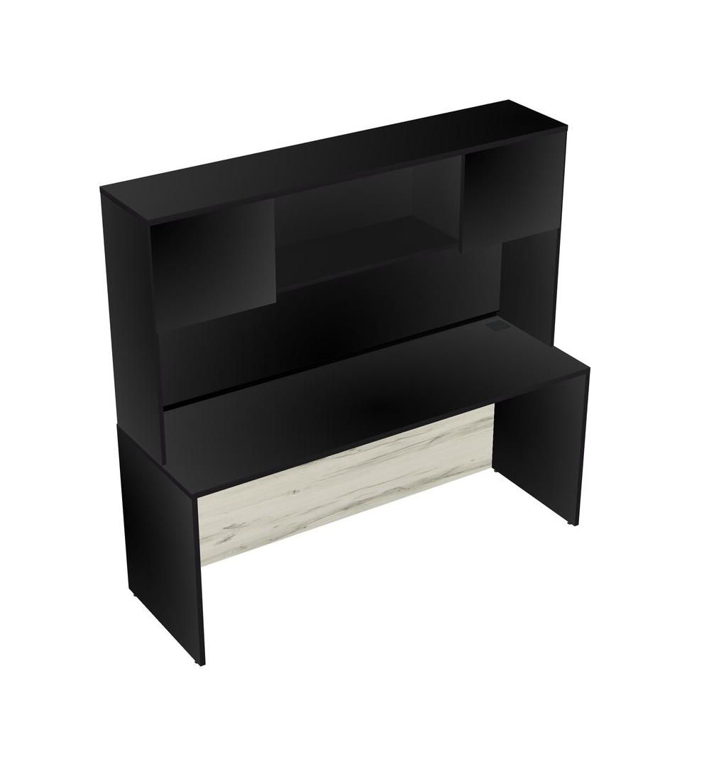 Black Rectangular Office Desk And Black Hutch