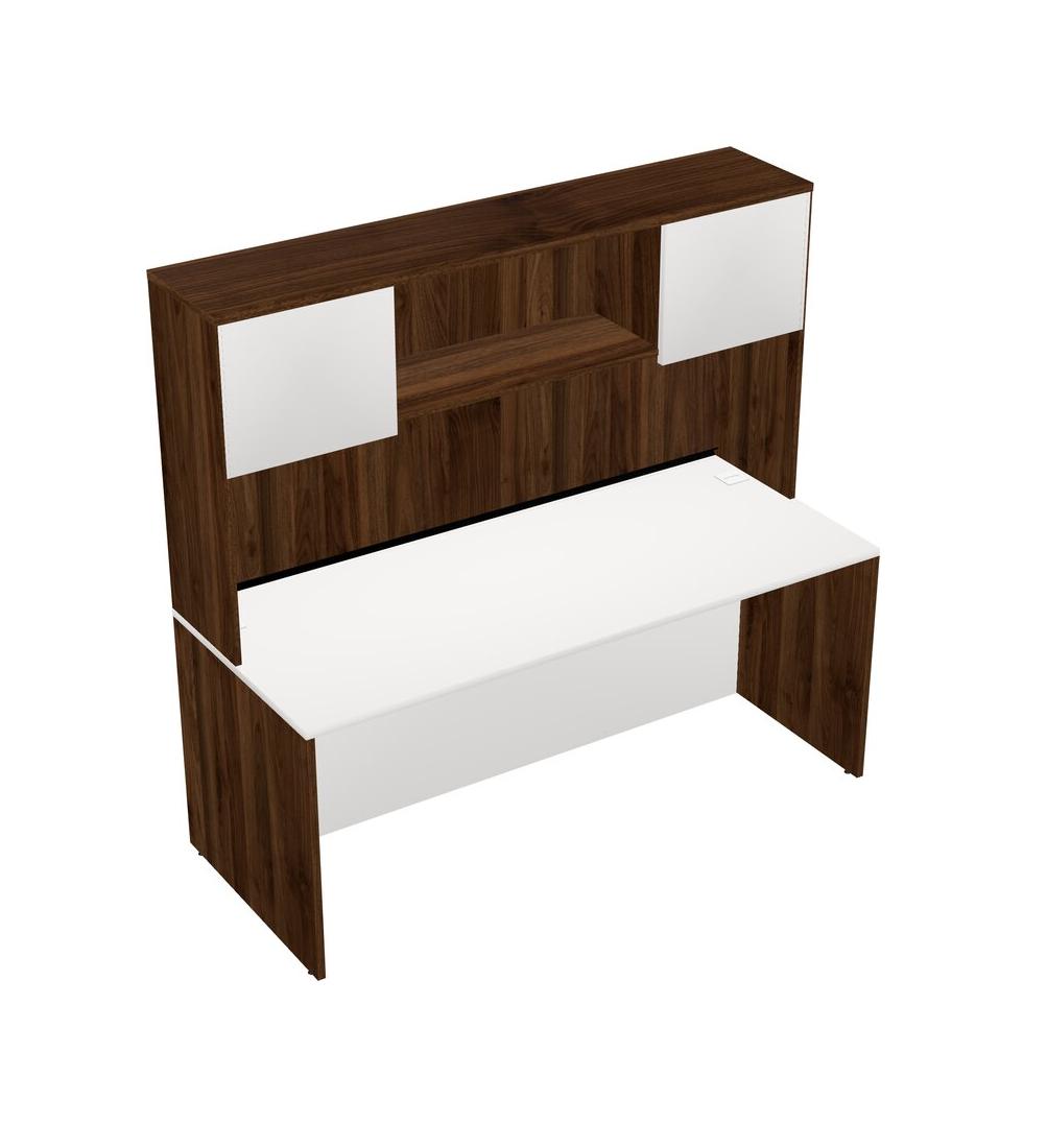 White Rectangular Office Desk And Columbia Walnut Hutch