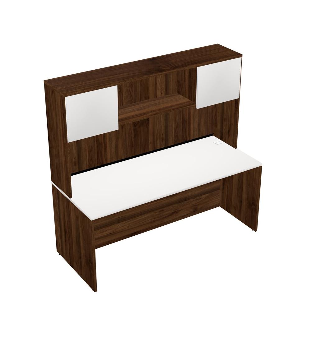 White Rectangular Office Desk And Columbia Walnut Hutch