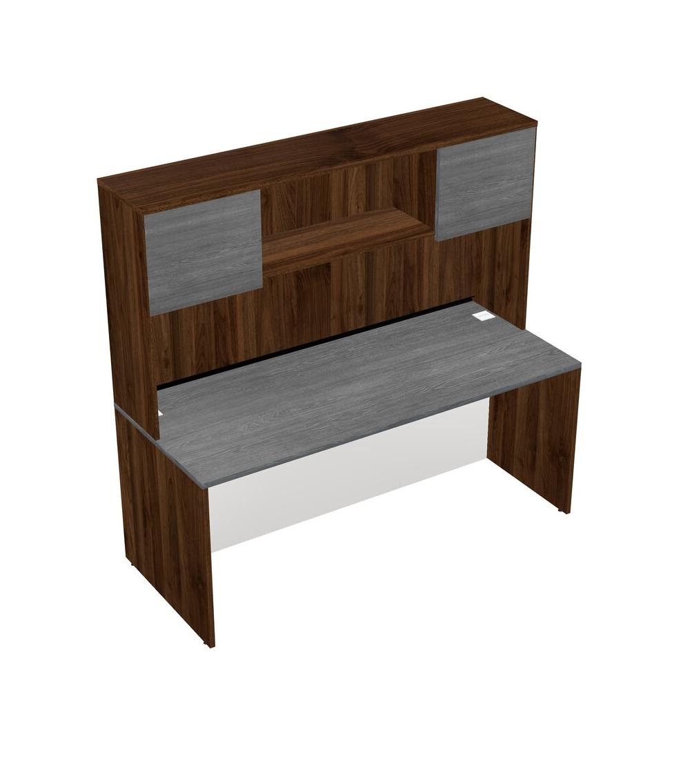 Grey Rectangular Office Desk And Columbia Walnut Hutch