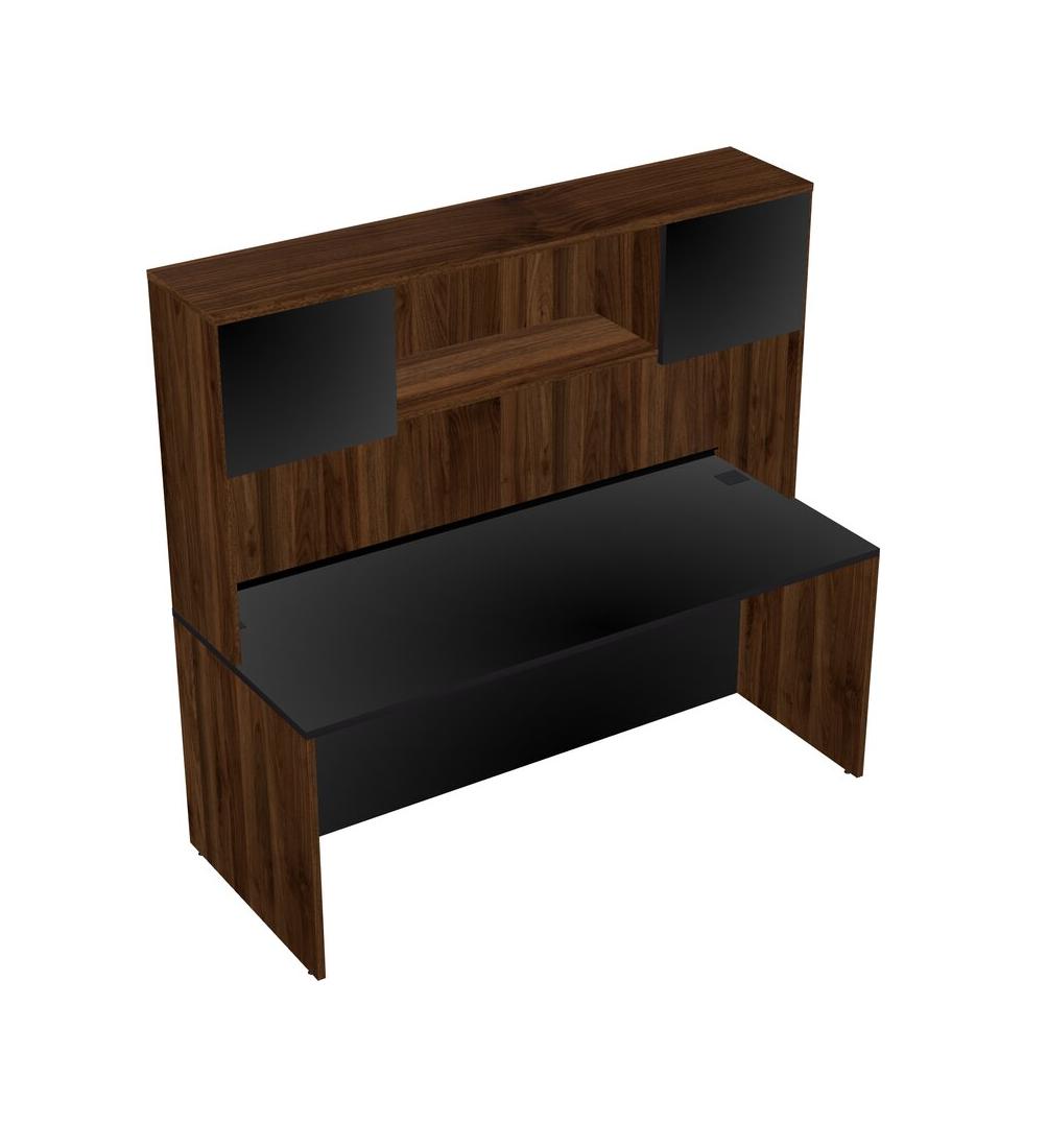 Black Rectangular Office Desk And Columbia Walnut Hutch