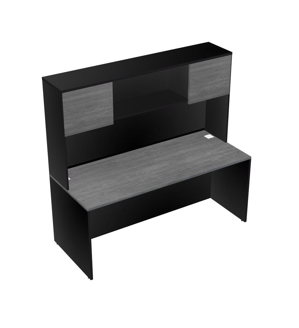 Grey Rectangular Office Desk And Black Hutch