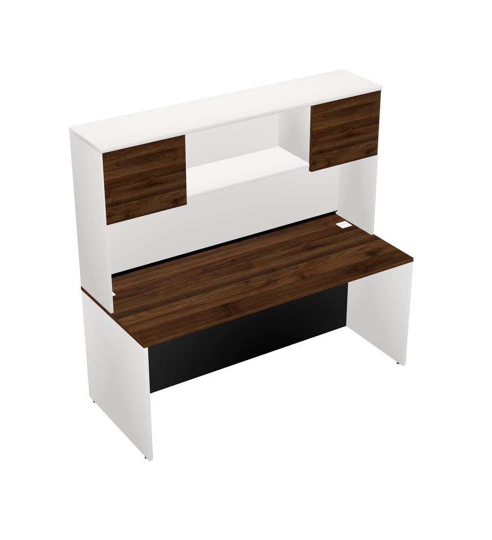 Columbia Walnut Rectangular Office Desk And White Hutch