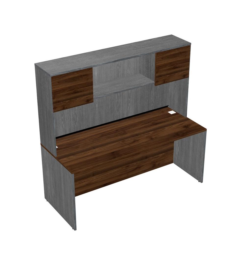 Columbia Walnut Rectangular Office Desk And Grey Hutch