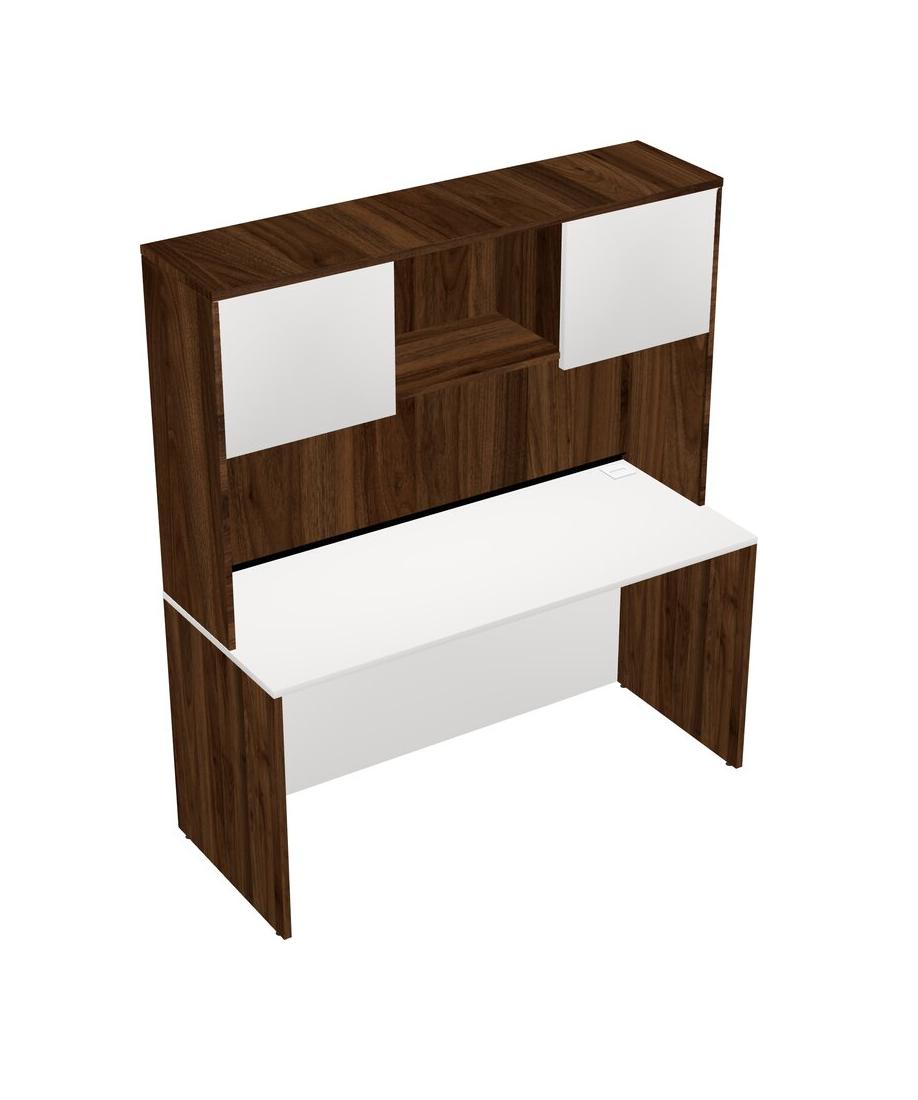 White Rectangular Office Desk And Columbia Walnut Hutch