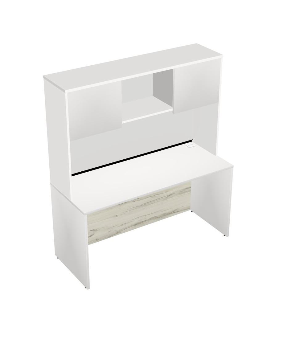 White Rectangular Office Desk And White Hutch
