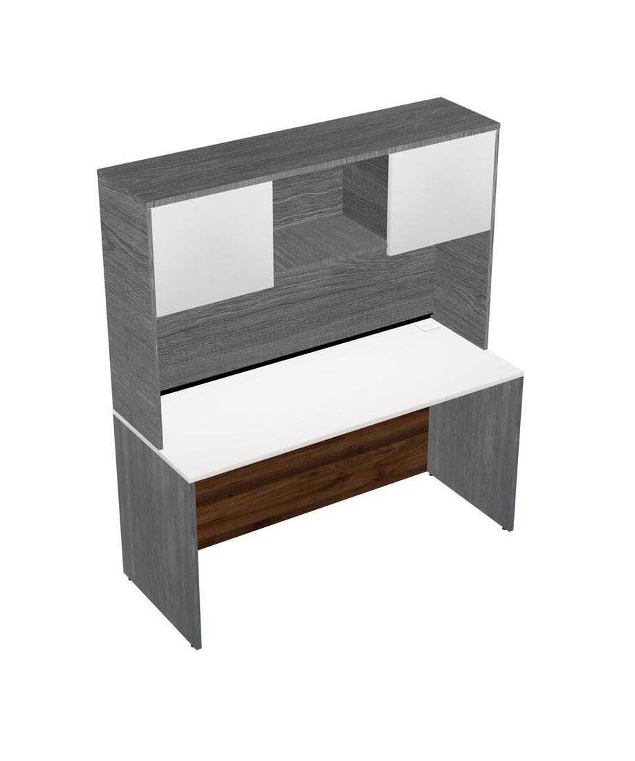 White Rectangular Office Desk And Grey Hutch