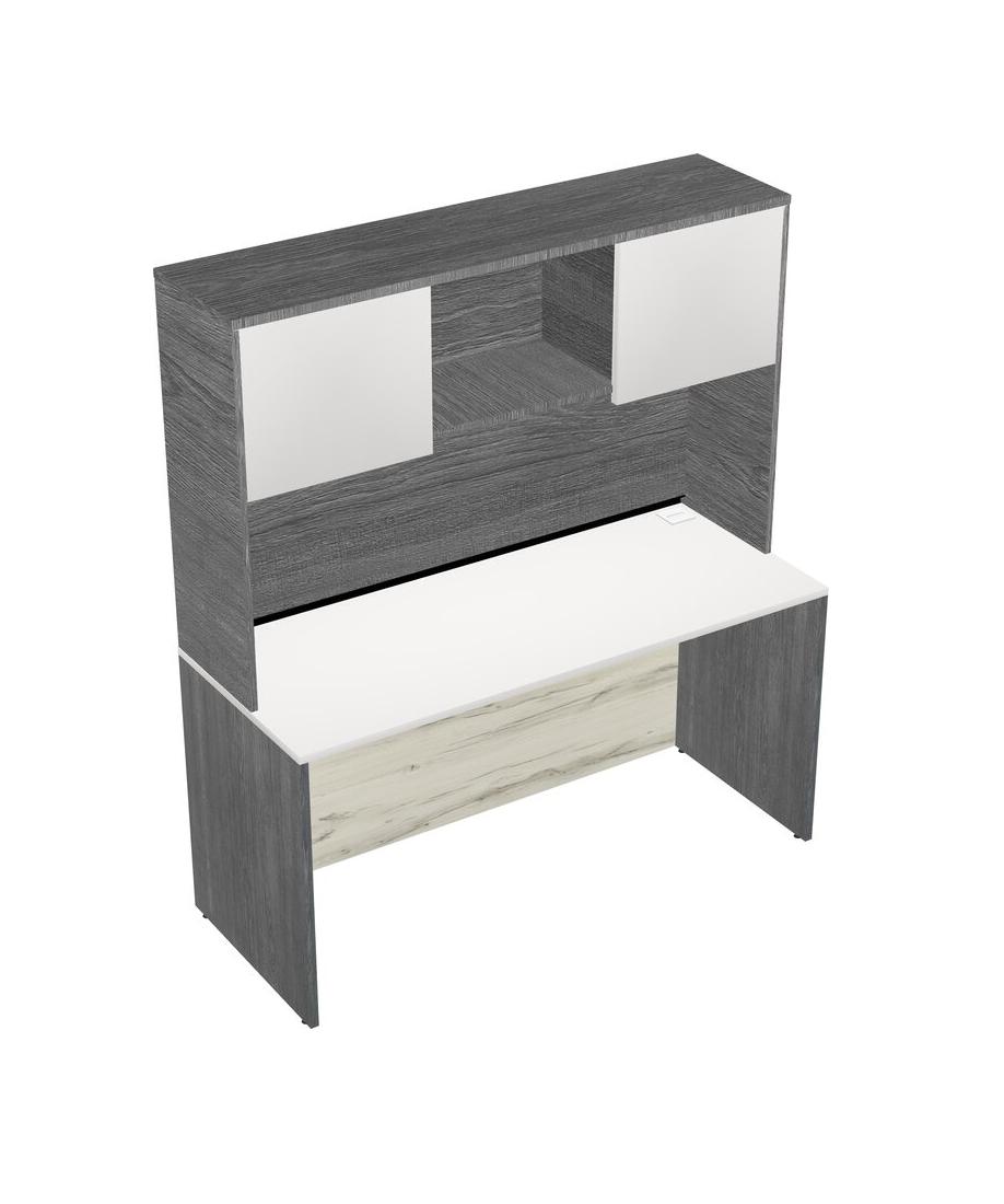 White Rectangular Office Desk And Grey Hutch