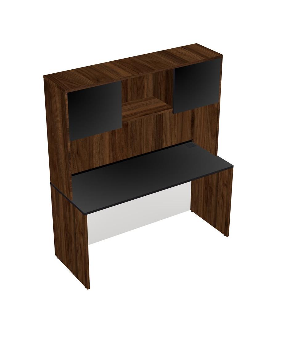 Black Rectangular Office Desk And Columbia Walnut Hutch