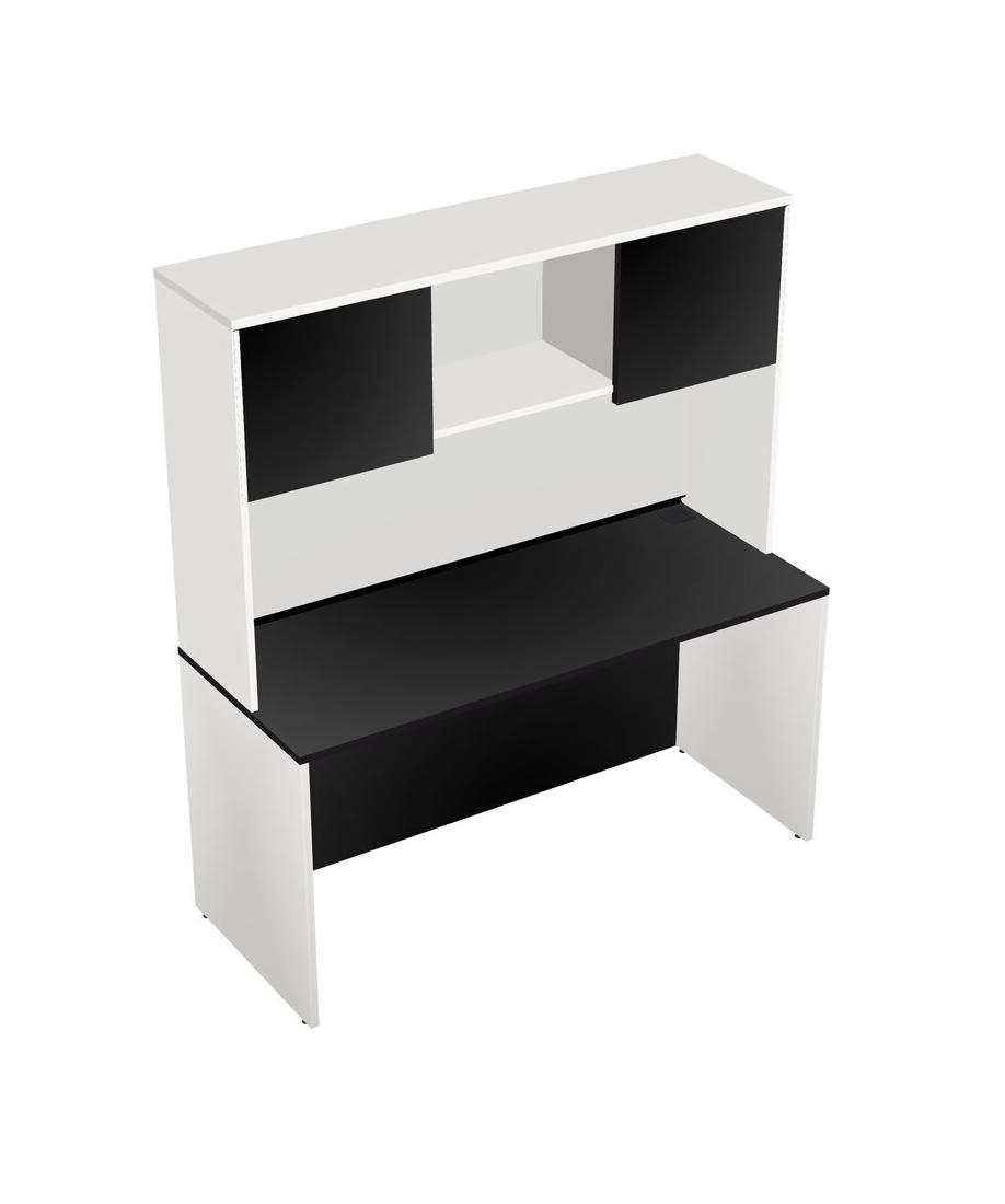 Black Rectangular Office Desk And White Hutch