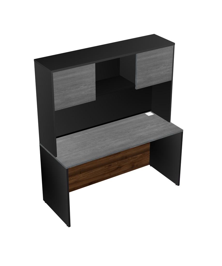 Grey Rectangular Office Desk And Black Hutch