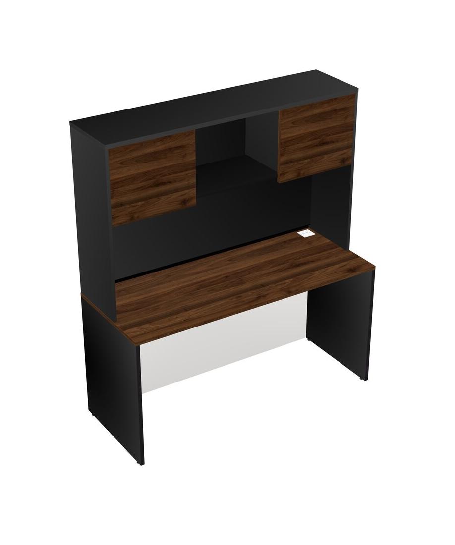 Columbia Walnut Rectangular Office Desk And Black Hutch