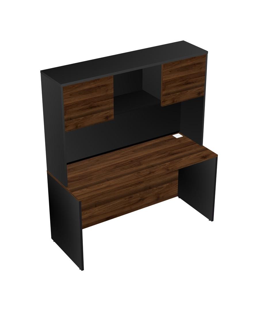 Columbia Walnut Rectangular Office Desk And Black Hutch