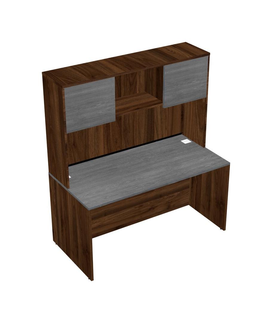 Grey Rectangular Office Desk And Columbia Walnut Hutch