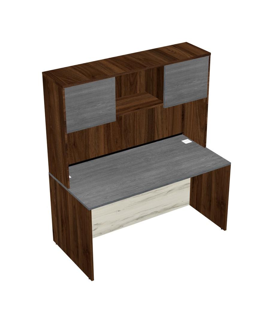 Grey Rectangular Office Desk And Columbia Walnut Hutch