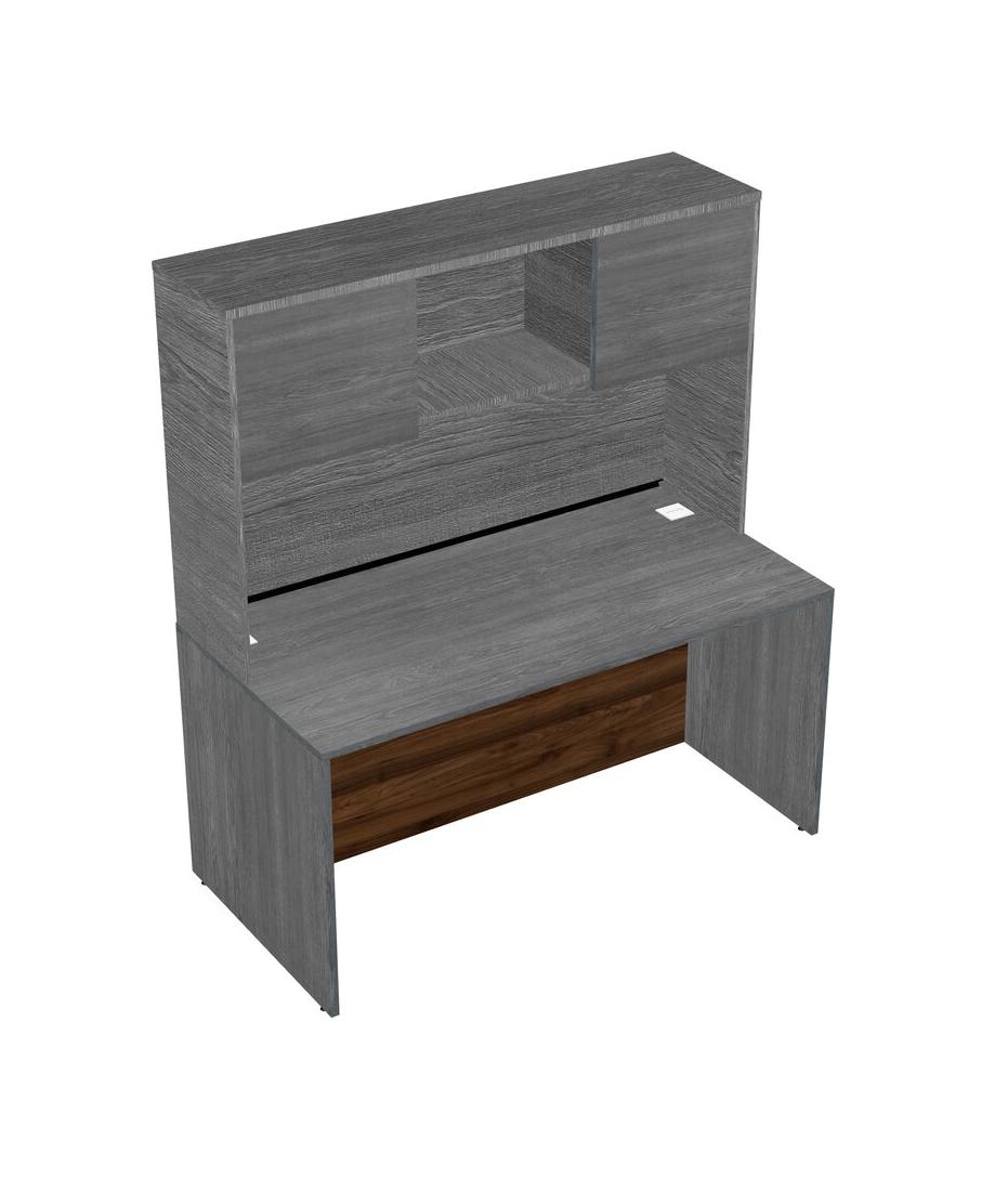 Grey Rectangular Office Desk And Grey Hutch