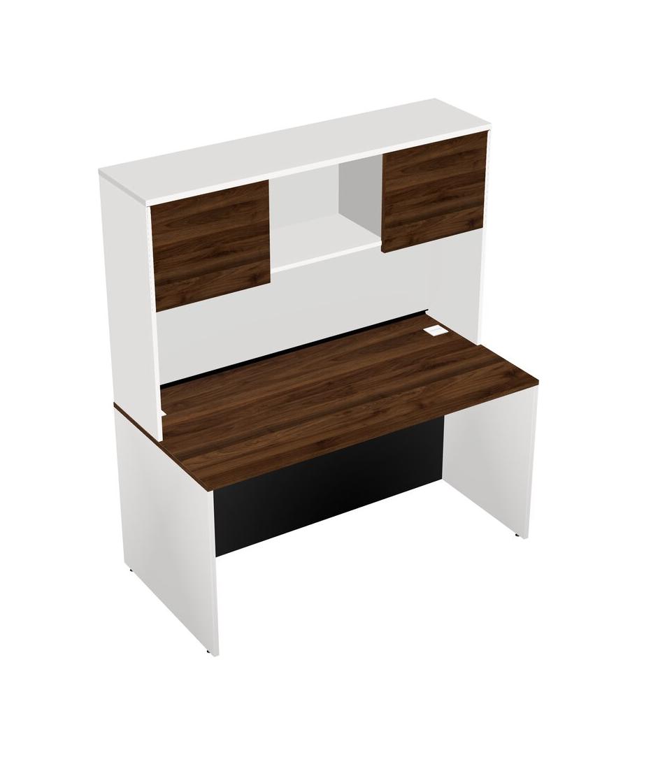 Columbia Walnut Rectangular Office Desk And White Hutch
