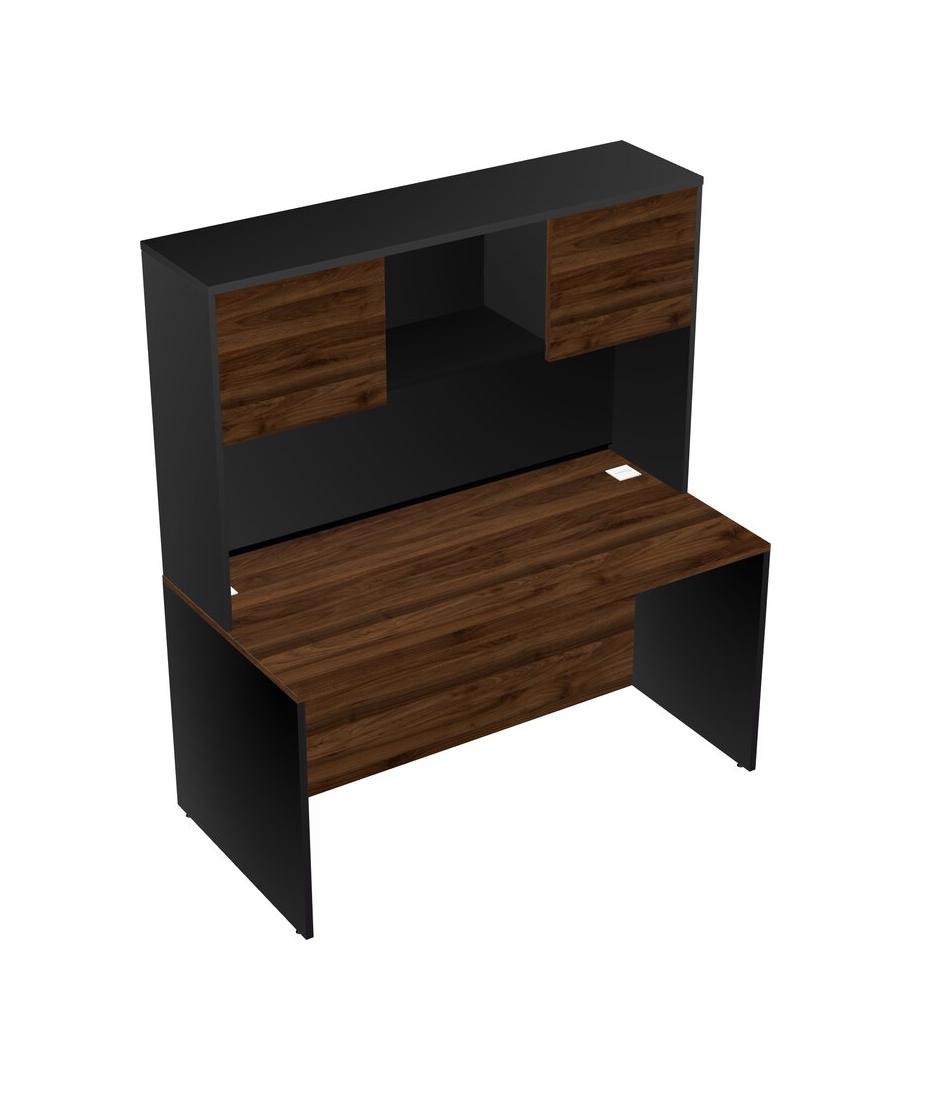 Columbia Walnut Rectangular Office Desk And Black Hutch
