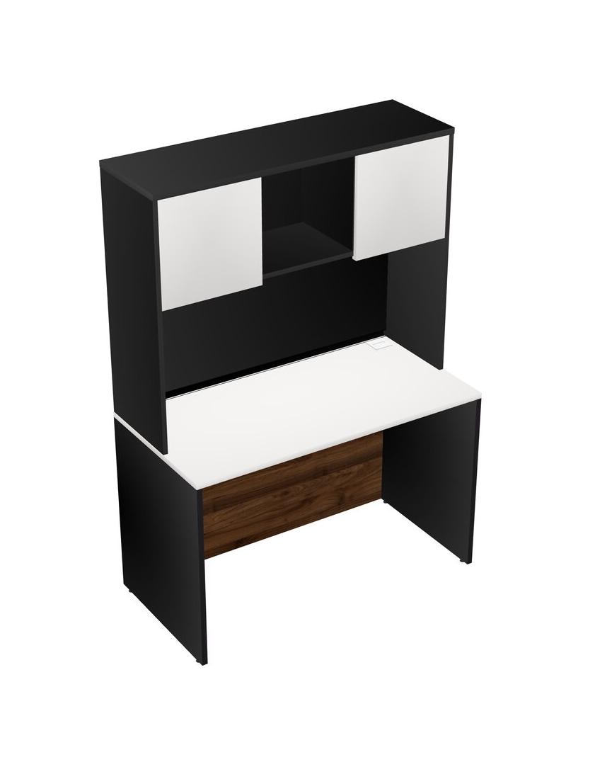 White Rectangular Office Desk And Black Hutch