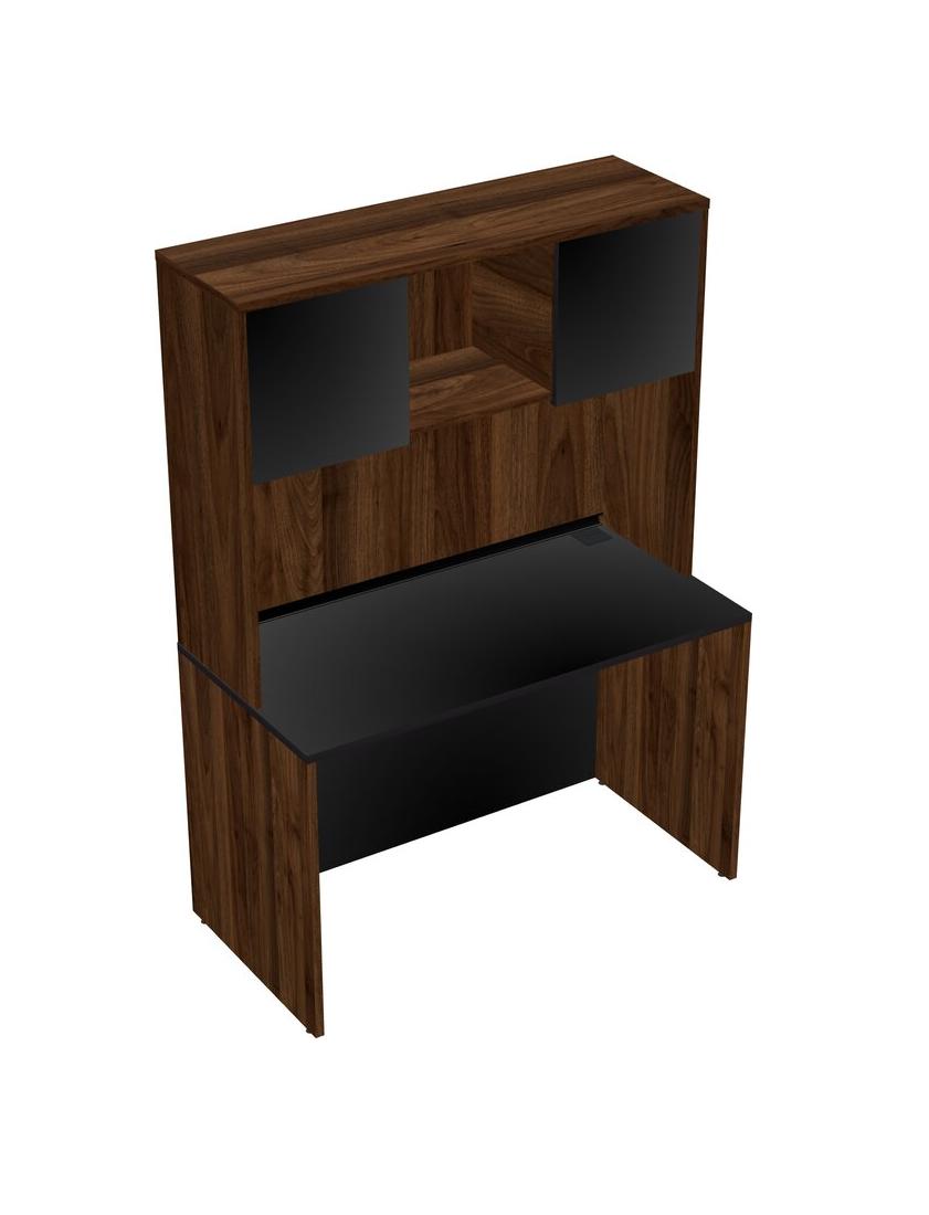 Black Rectangular Office Desk And Columbia Walnut Hutch