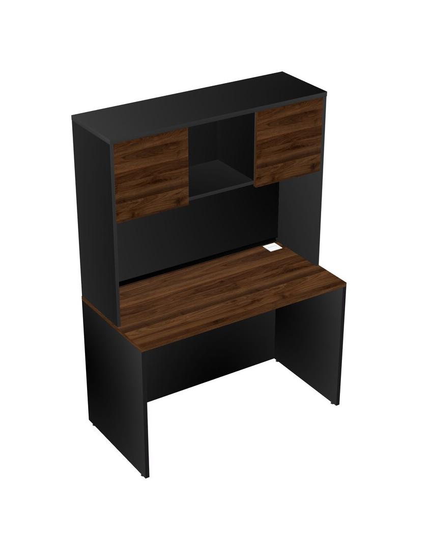 Columbia Walnut Rectangular Office Desk And Black Hutch