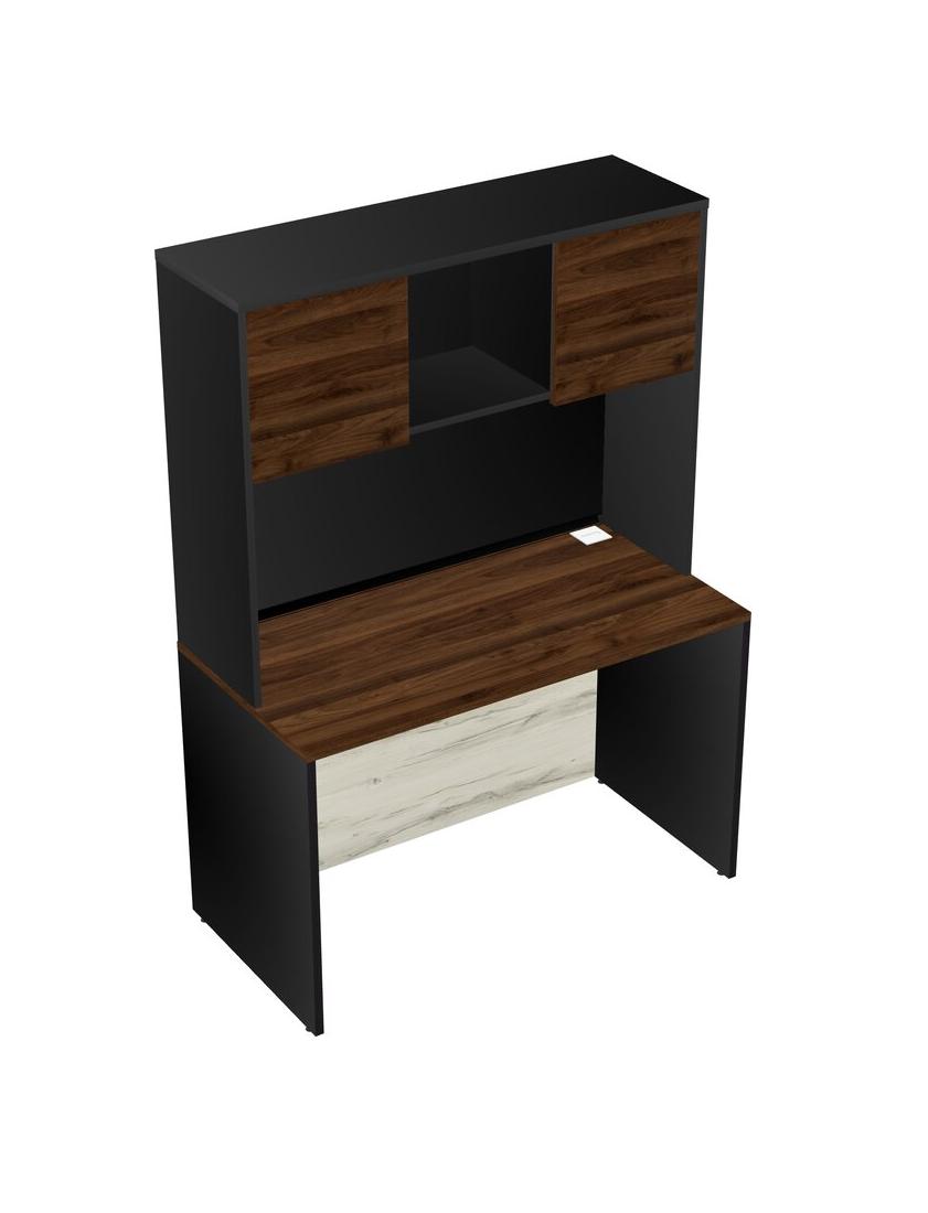 Columbia Walnut Rectangular Office Desk And Black Hutch