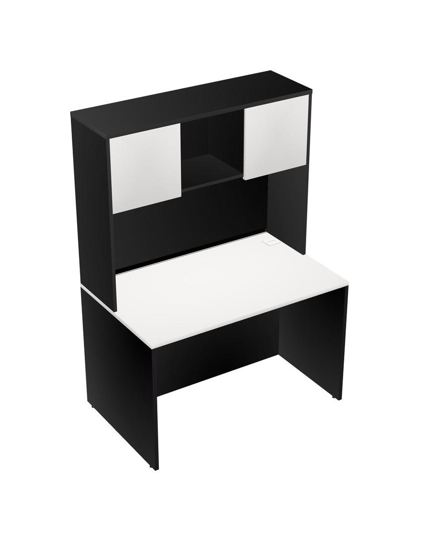 White Rectangular Office Desk And Black Hutch