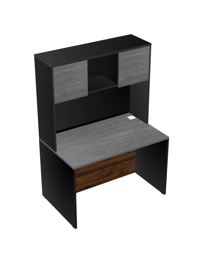Grey Rectangular Office Desk And Black Hutch