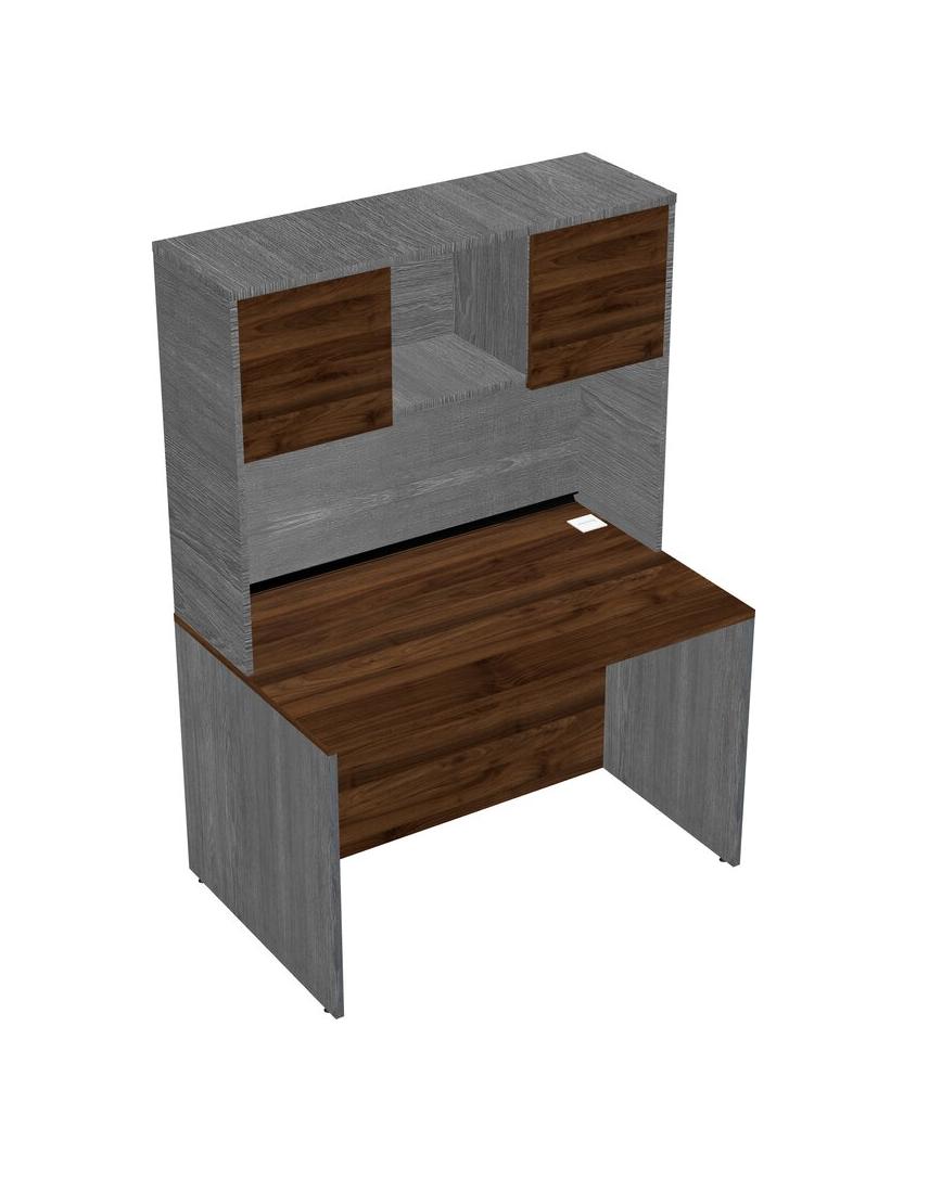 Columbia Walnut Rectangular Office Desk And Grey Hutch