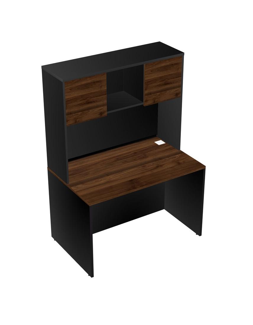 Columbia Walnut Rectangular Office Desk And Black Hutch