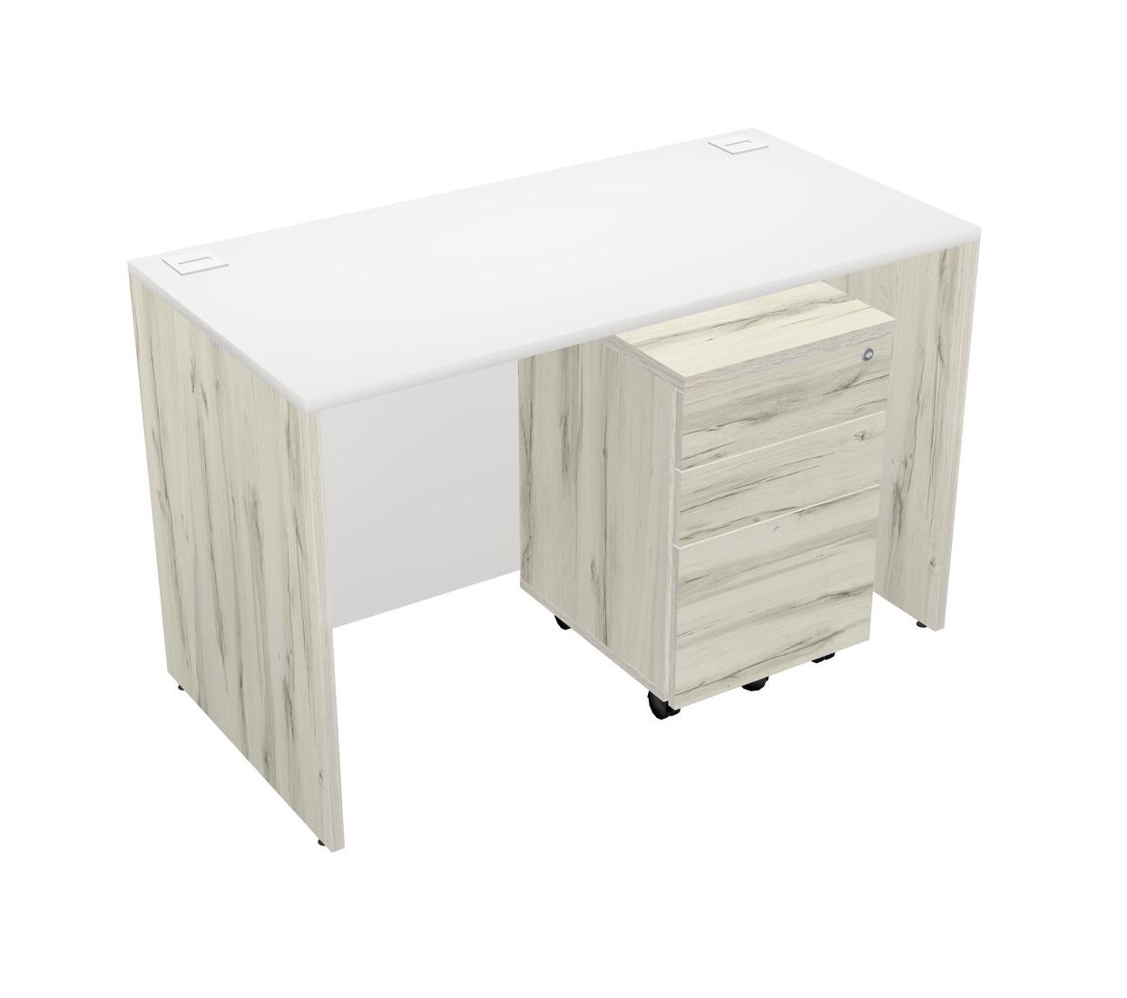 White Rectangular Office Desk Plus Heinne Holz Wooden Mobile Drawers
