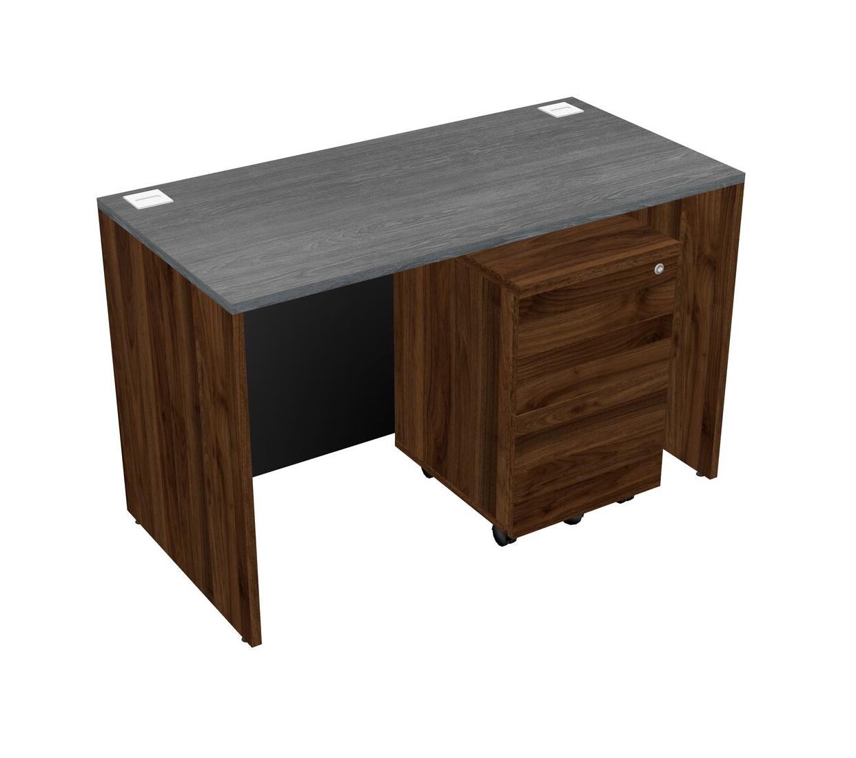Grey Rectangular Office Desk Plus Columbia Walnut Wooden Mobile Drawers