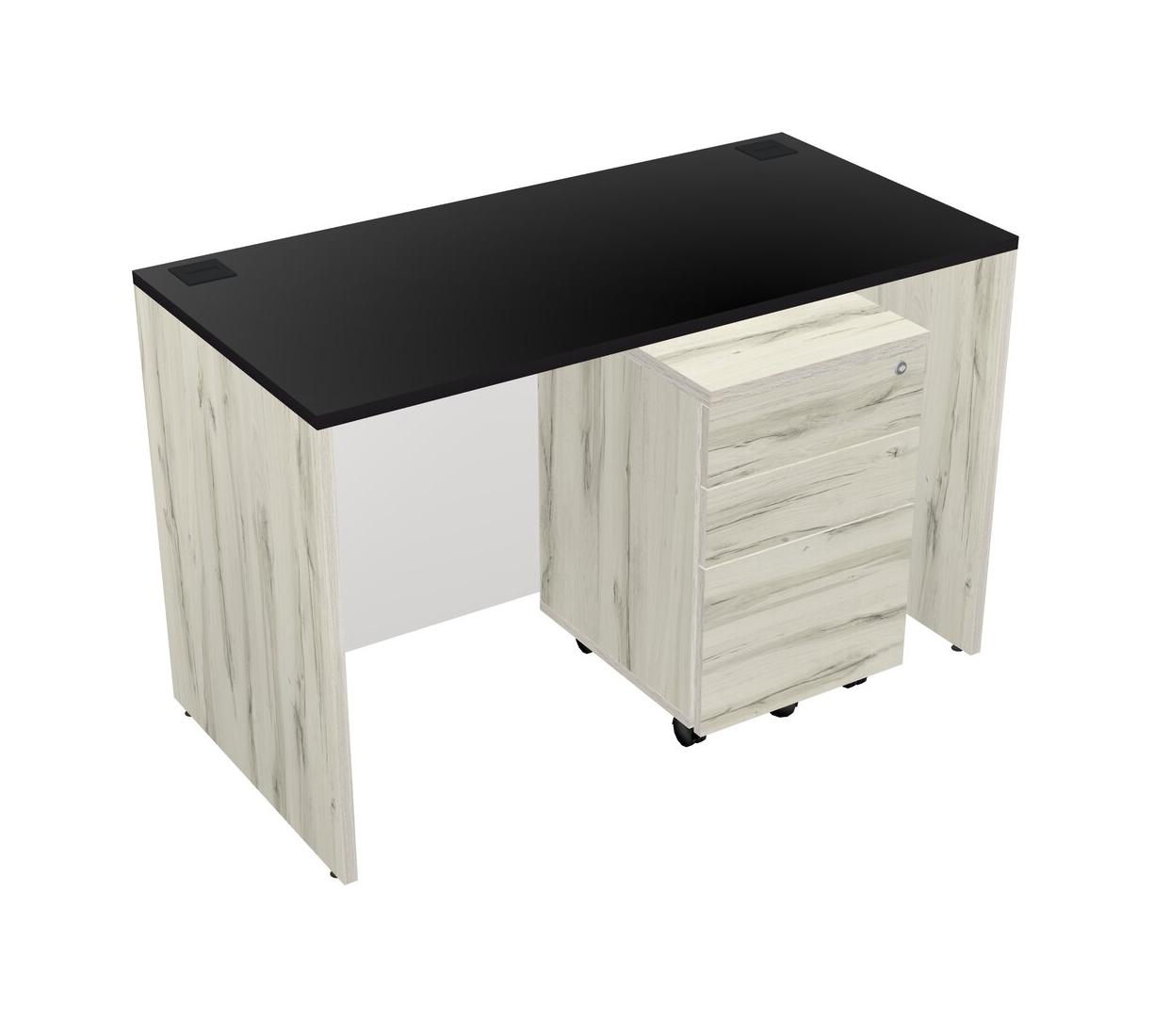 Black Rectangular Office Desk Plus Heinne Holz Wooden Mobile Drawers