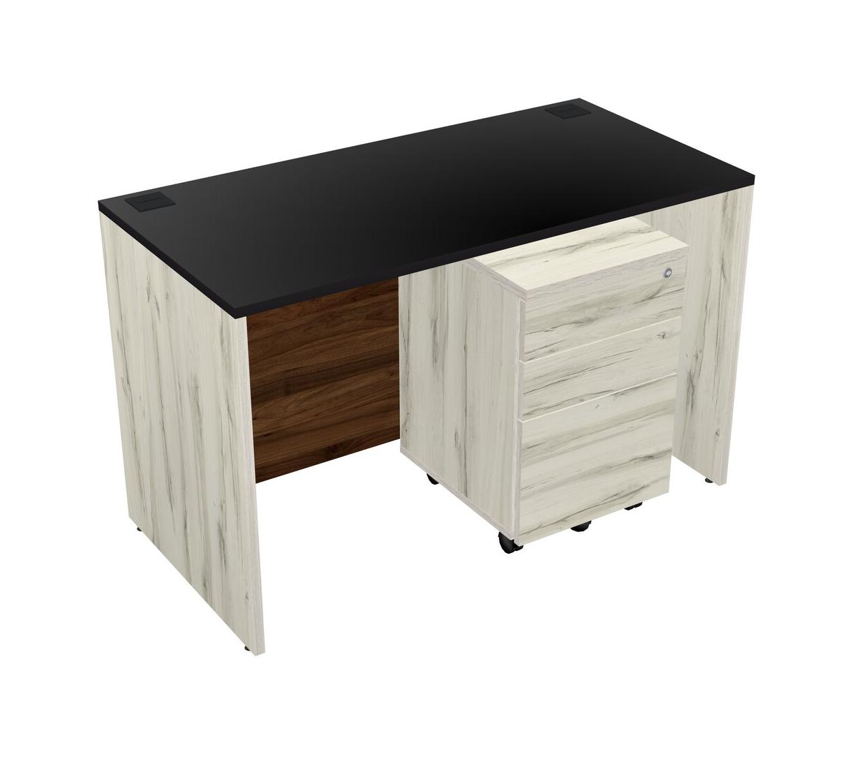 Black Rectangular Office Desk Plus Heinne Holz Wooden Mobile Drawers