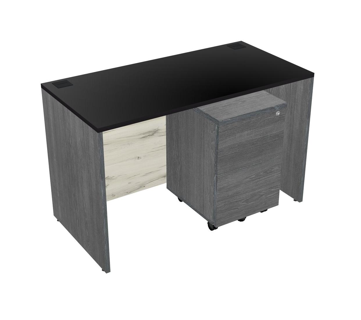 Black Rectangular Office Desk Plus Grey Wooden Mobile Drawers