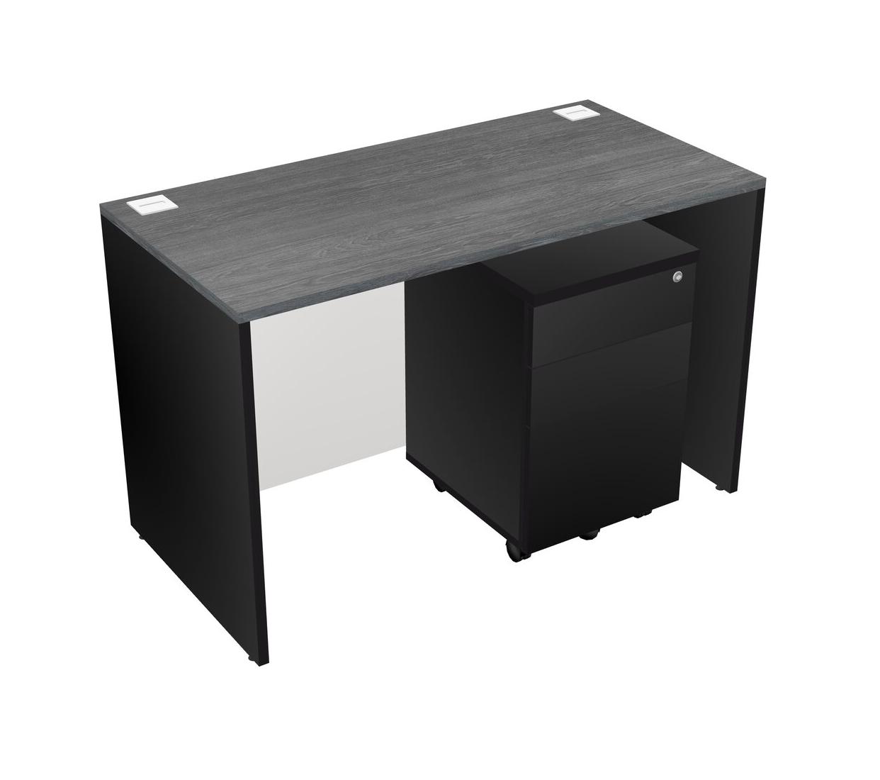 Grey Rectangular Office Desk Plus Black Wooden Mobile Drawers