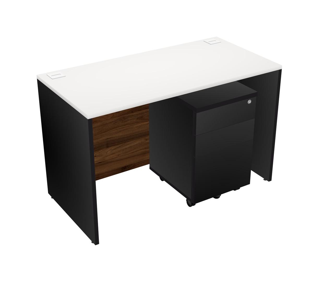 White Rectangular Office Desk Plus Black Wooden Mobile Drawers