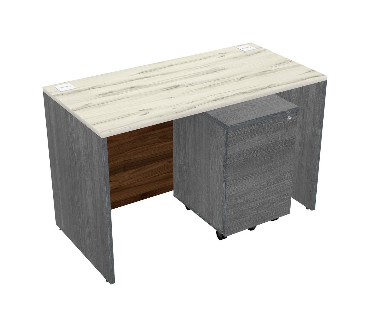 Heinne Holz Rectangular Office Desk Plus Grey Wooden Mobile Drawers