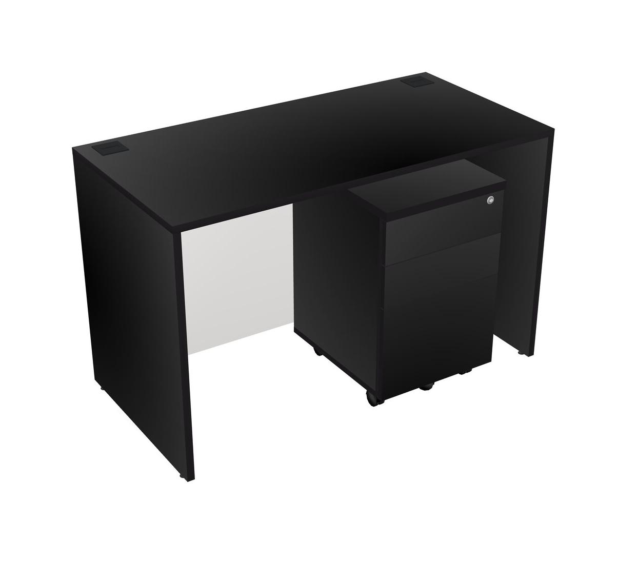 Black Rectangular Office Desk Plus Black Wooden Mobile Drawers