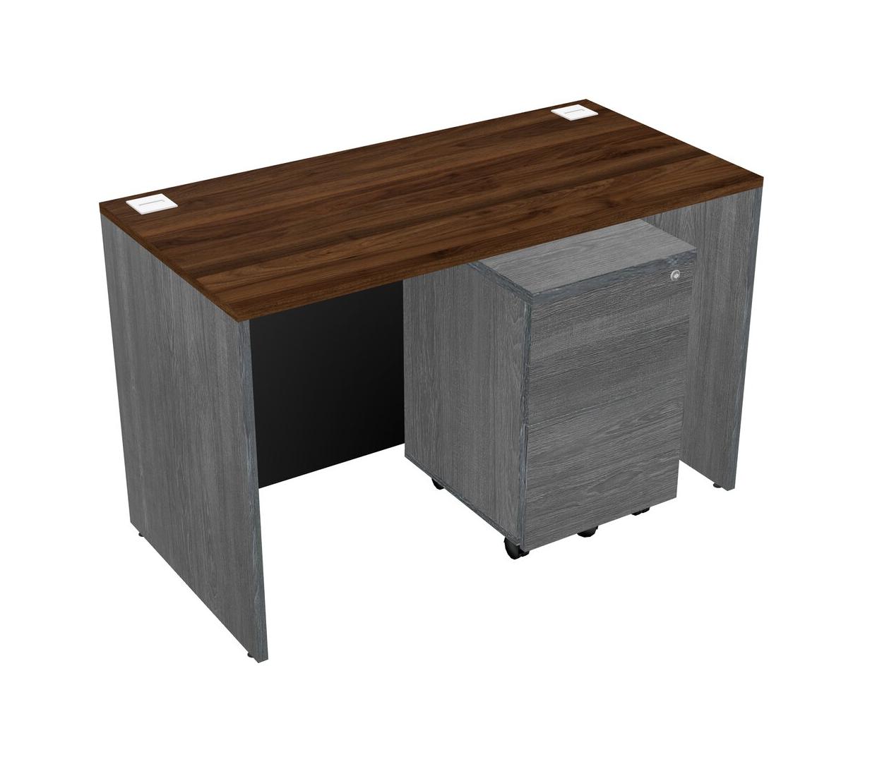 Columbia Walnut Rectangular Office Desk Plus Grey Wooden Mobile Drawers