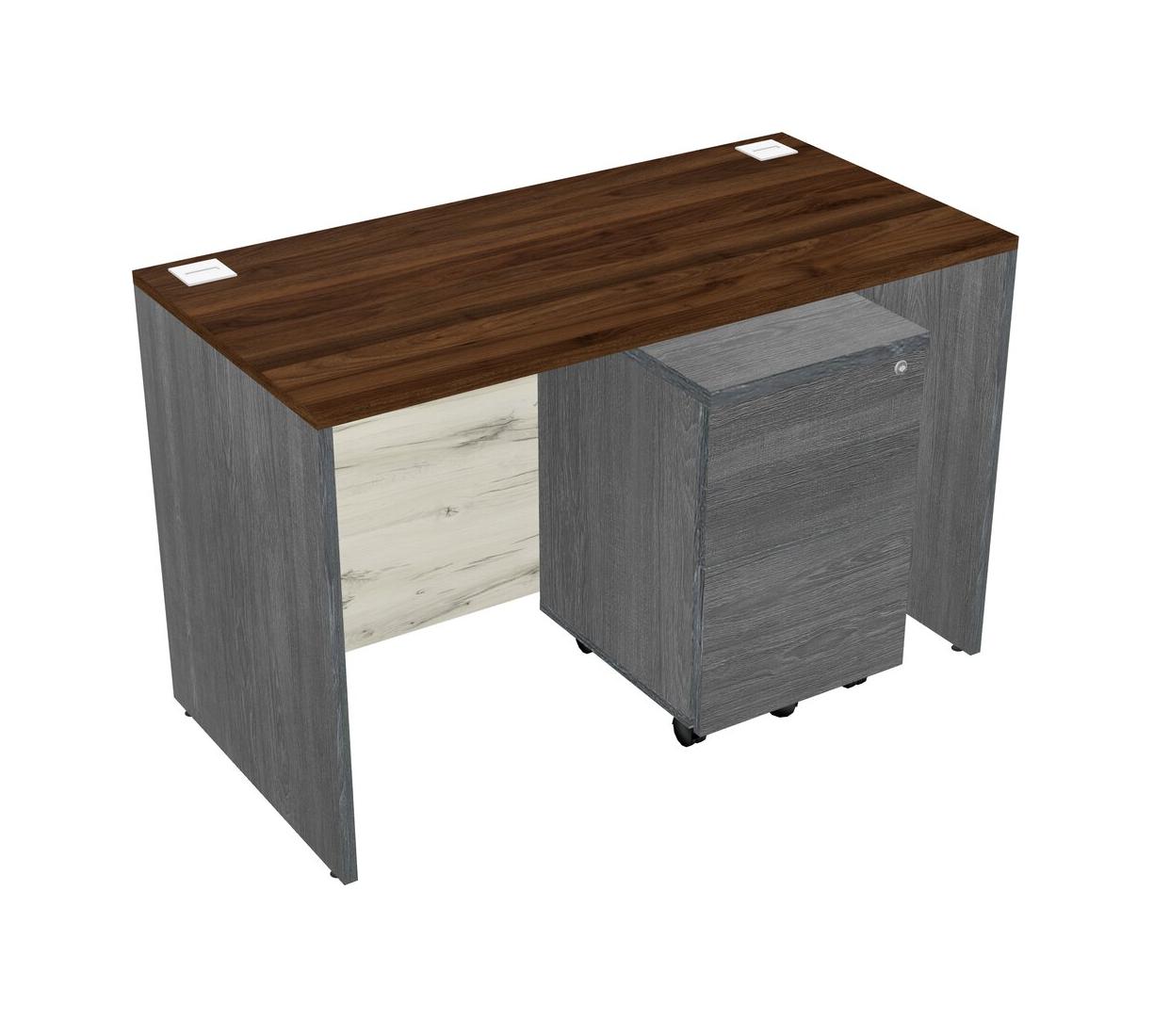 Columbia Walnut Rectangular Office Desk Plus Grey Wooden Mobile Drawers