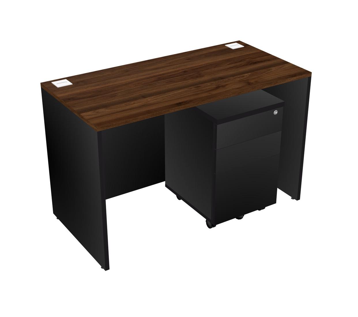 Columbia Walnut Rectangular Office Desk Plus Black Wooden Mobile Drawers