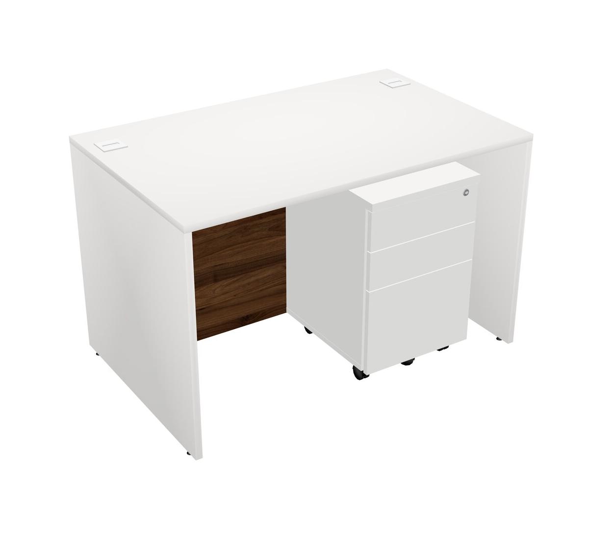 White Rectangular Office Desk Plus White Wooden Mobile Drawers