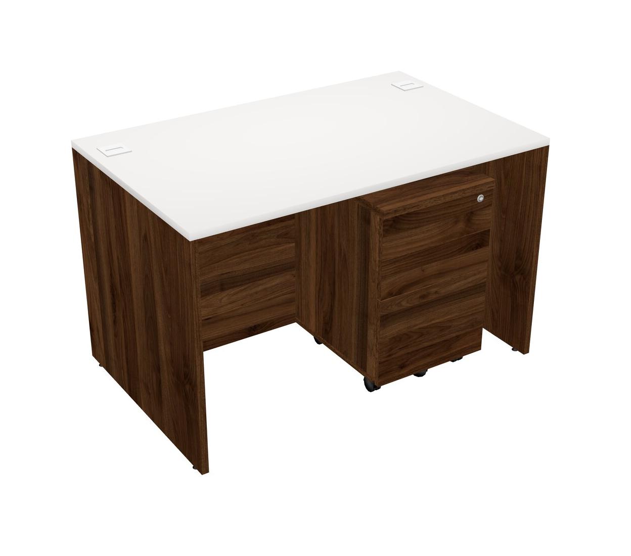 White Rectangular Office Desk Plus Columbia Walnut Wooden Mobile Drawers