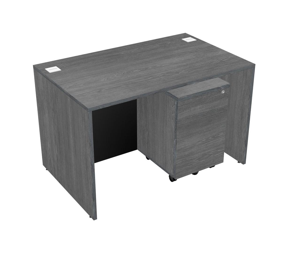 Grey Rectangular Office Desk Plus Grey Wooden Mobile Drawers