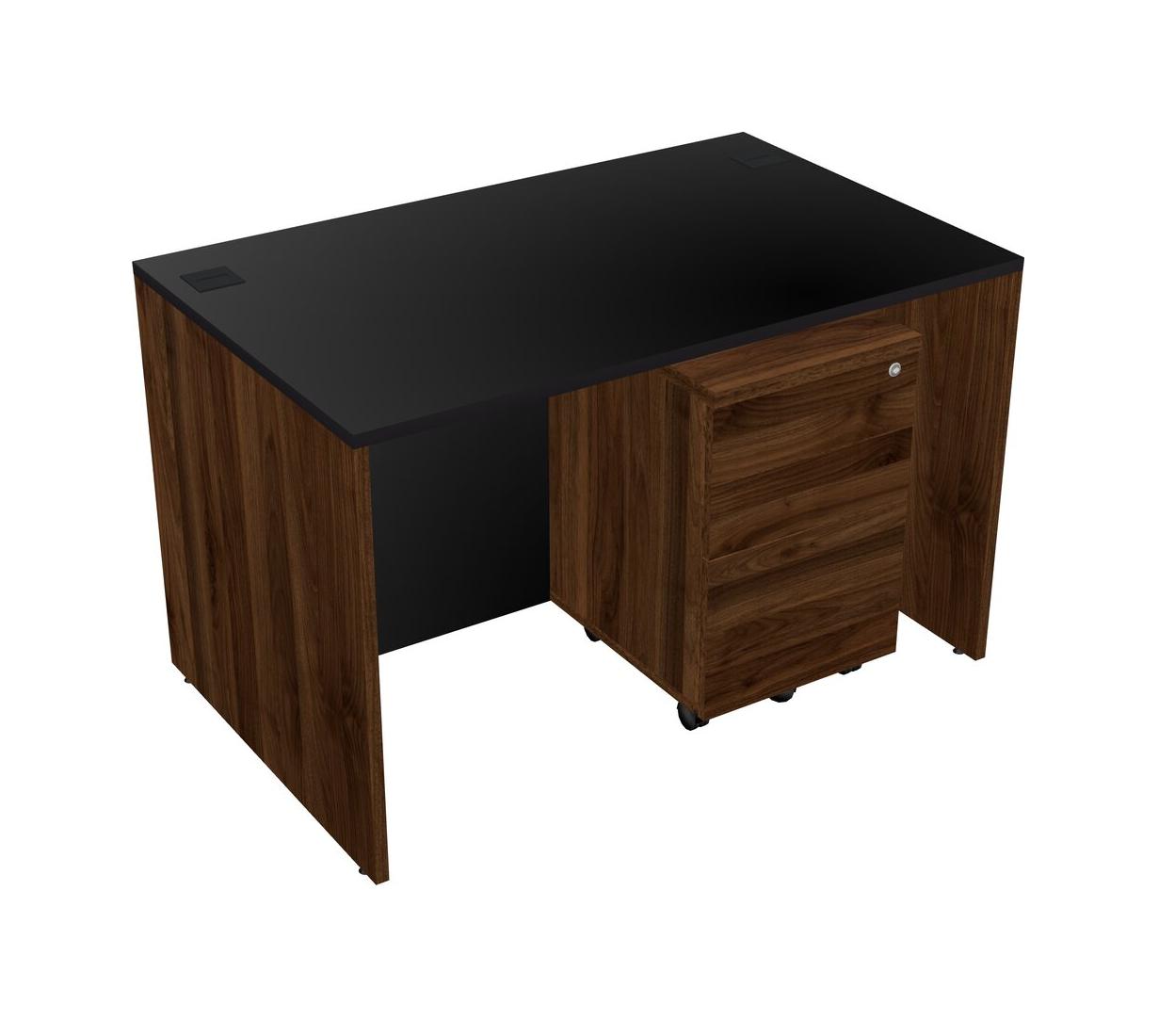 Black Rectangular Office Desk Plus Columbia Walnut Wooden Mobile Drawers