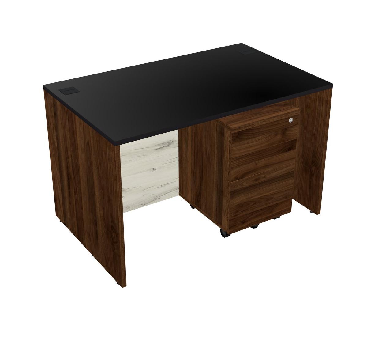 Black Rectangular Office Desk Plus Columbia Walnut Wooden Mobile Drawers